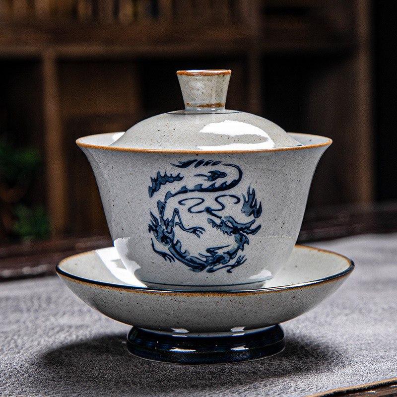 Наша Гайвань, втілення вишуканості, виготовлена з високоякісної порцеляни, що має витончену майстерність і довговічність. Її глазур додасть вашому чаюванню неймовірну гармонію та пишність. Візерунок дракону, надає цій Гайвані особливу чарівність.