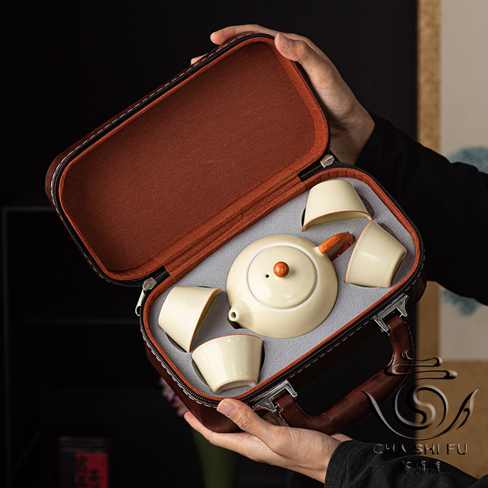 У цьому наборі є чайник для заварювання чаю; чотири піали; валізка для перенесення та зберігання.