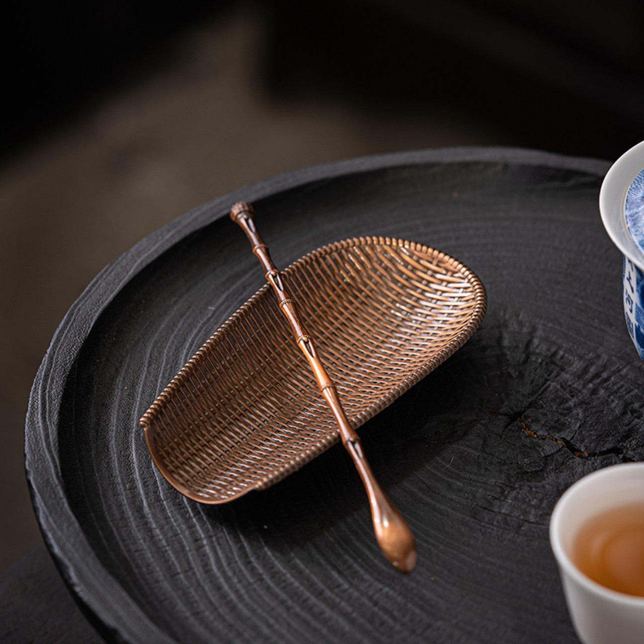 До набору входить ложечка у формі бамбукової гілки — символ витримки, природності й спокою. Вона допомагає дозувати чай точно й красиво, додаючи до процесу нотку ритуальності.
