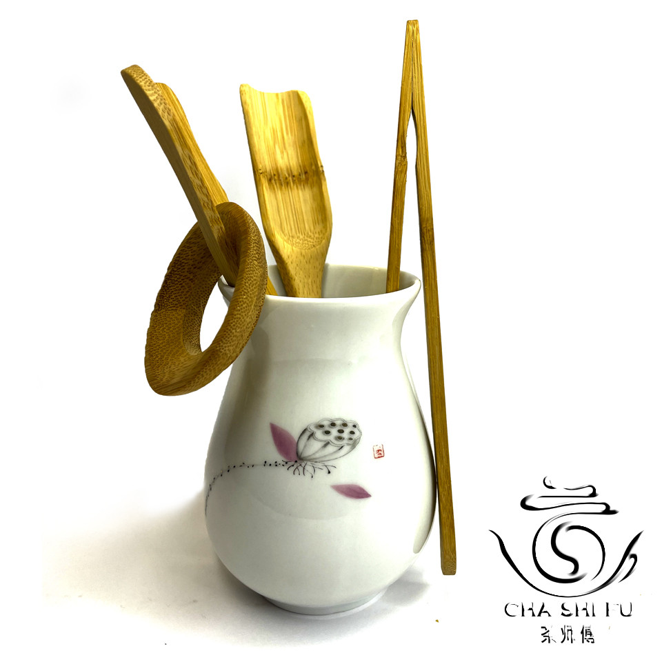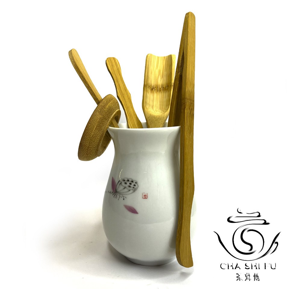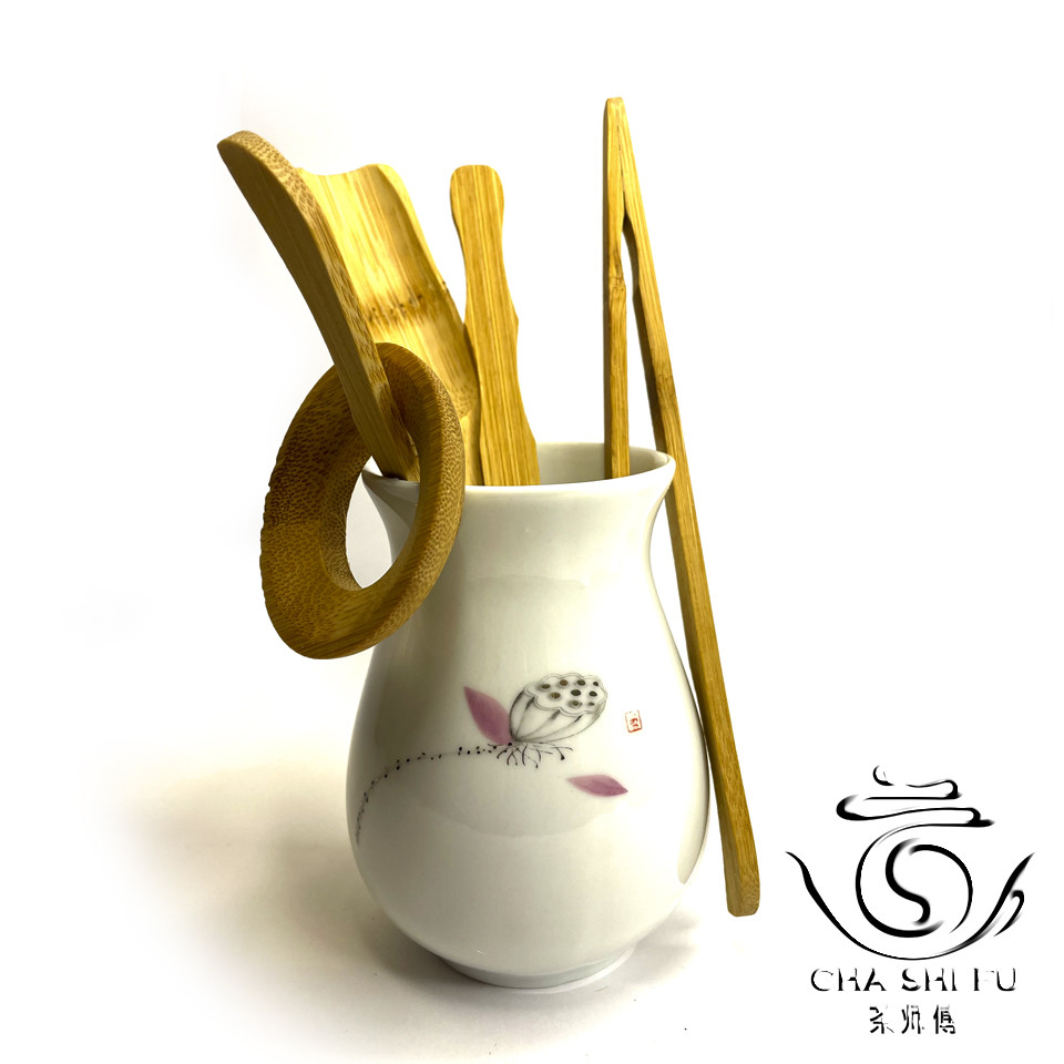 Керамічна ваза, що входить до комплекту, не тільки зберігає ваші чайні інструменти в порядку, а й слугує стильним елементом декору. Її гладка поверхня та вишуканий дизайн підкреслюють природну красу набору.