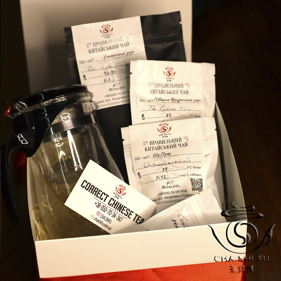 У цьому наборі зібрани три види класичного чаю та тіпод:
