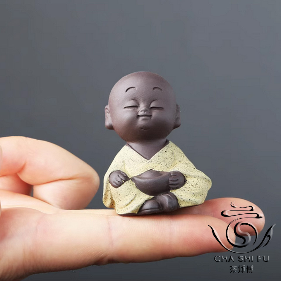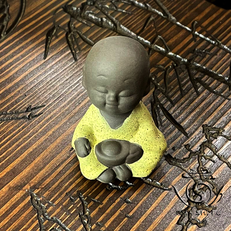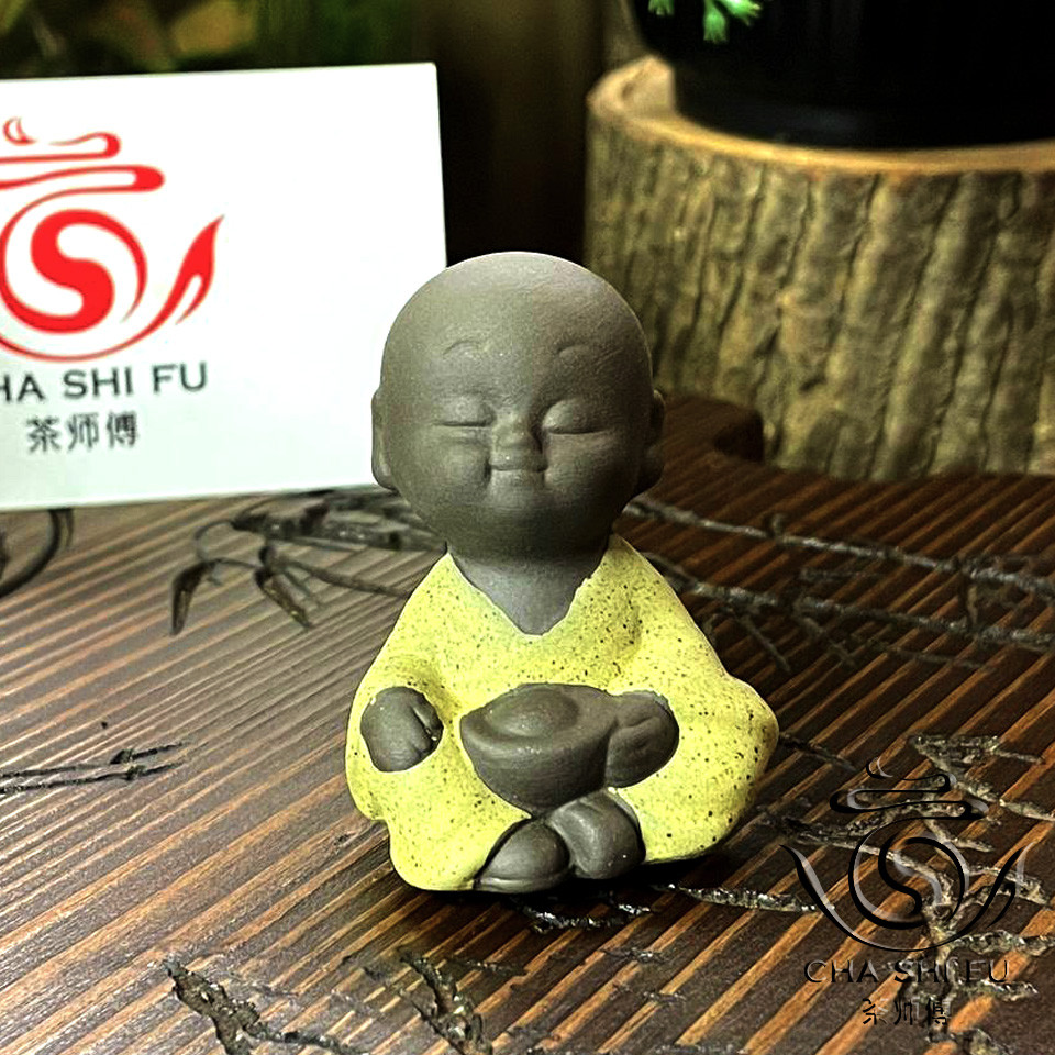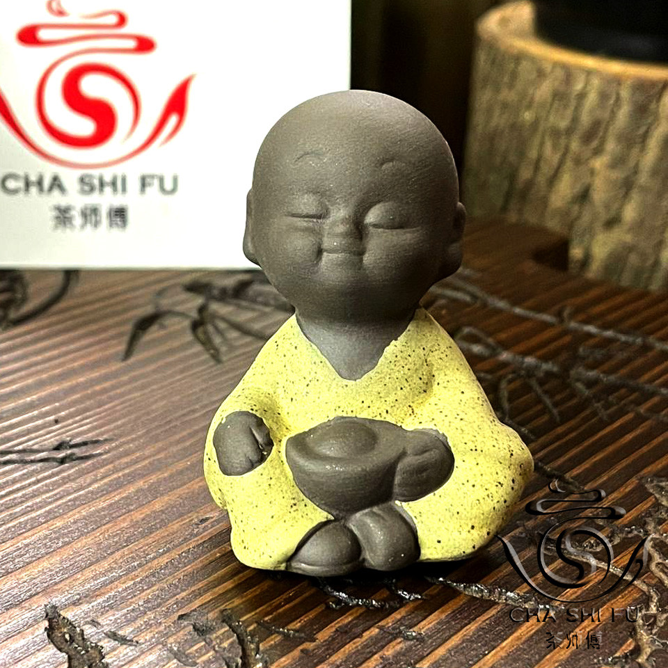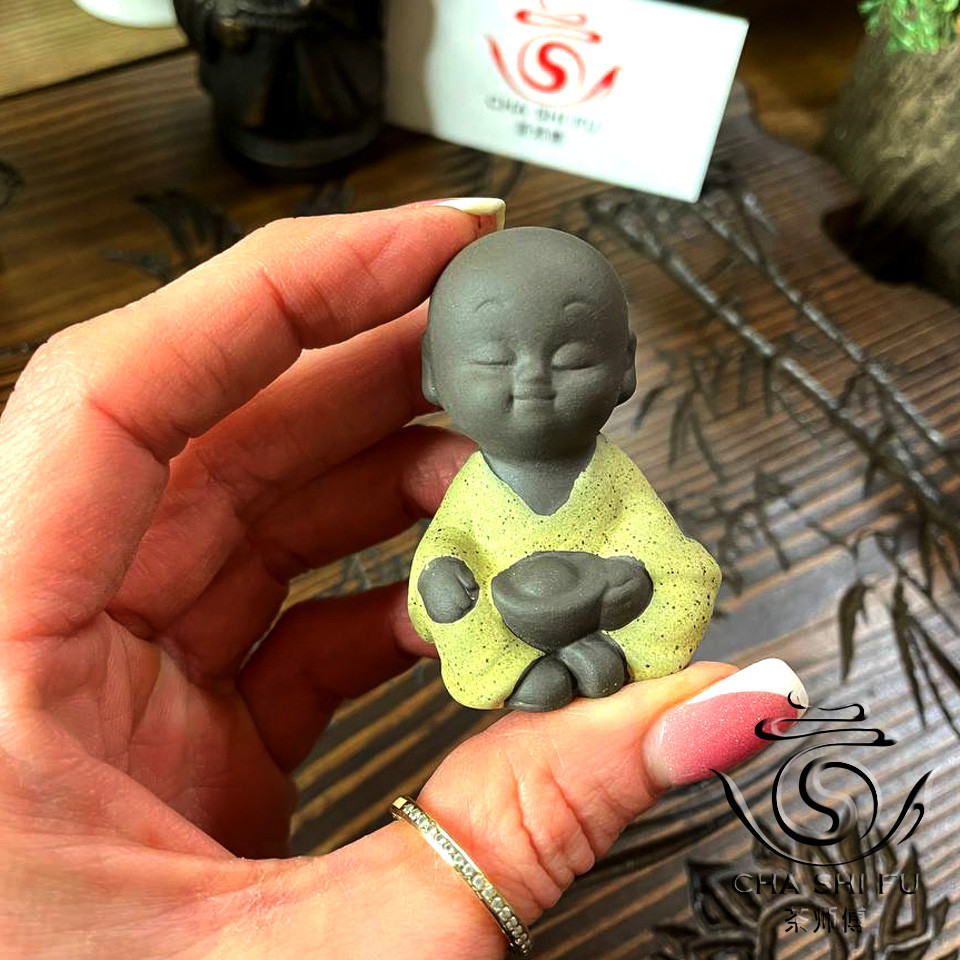 Чайний Будда одягнений у приголомшливий одяг жовтого кольору, що символізує світло, радість та щастя. Цей тонкий акцент надає фігурці особливої теплоти та яскравості, що робить його не тільки чайним супутником, але й стильним елементом декору для вашого чайного столу.