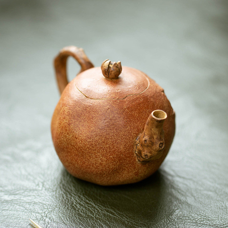 Форма граната символізує достаток, родючість та удачу у китайській культурі, а природна текстура робить кожен виріб унікальним. Чайник має зручний носик, внутрішнє ситечко та комфортну ручку з фактурою гілки.